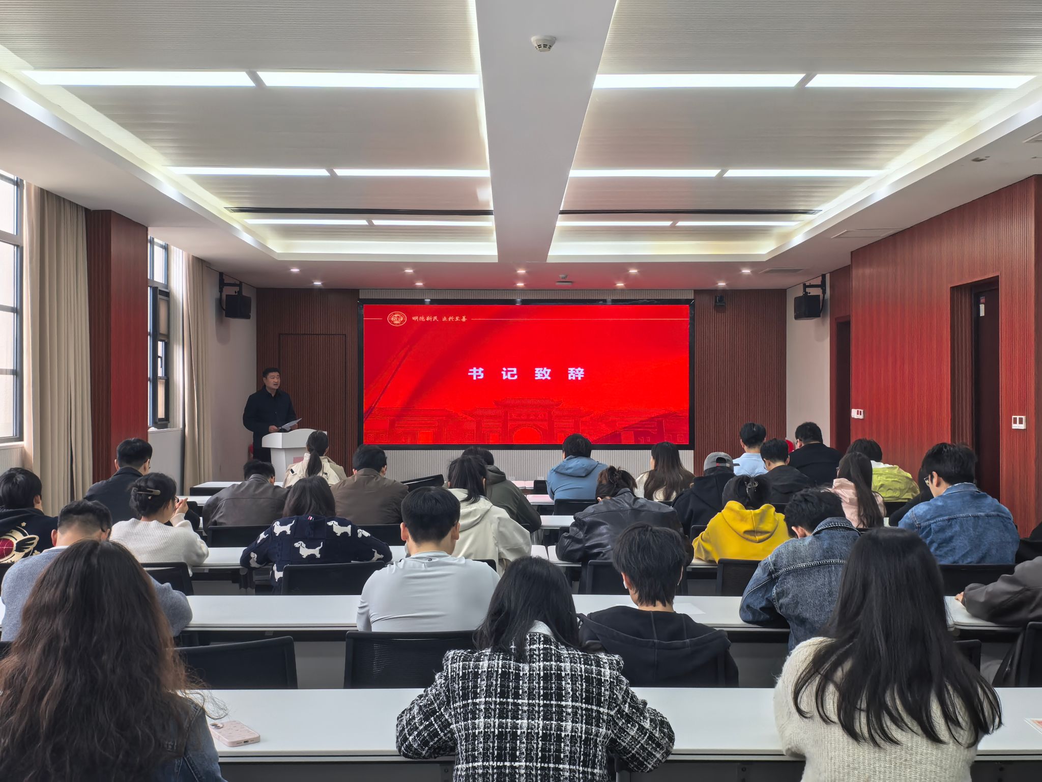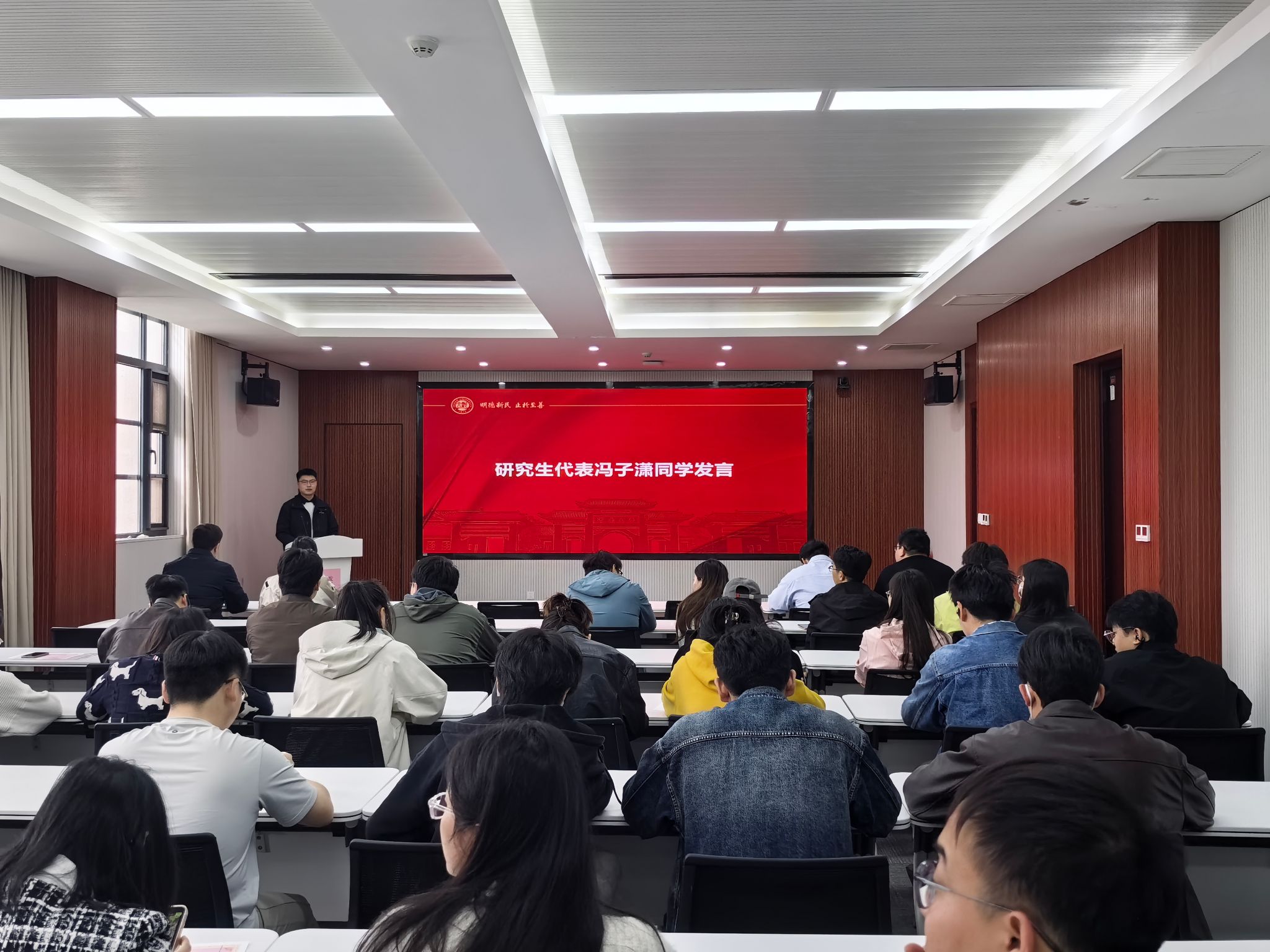 研究生表彰大会,出席本次活动的有学院党委副书记董文、研究生辅导员谷志达、教师代表及学院全体研究生。