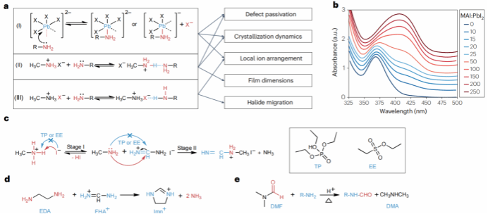 图2. 钙钛矿的前驱体化学、路易斯碱添加剂和溶剂